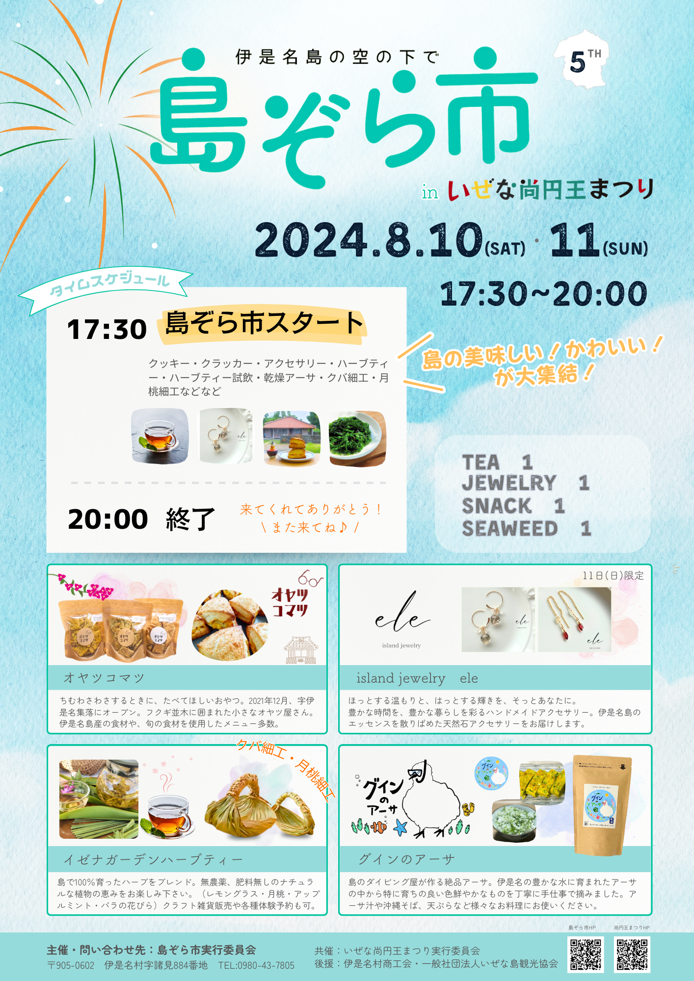 8月10日(土)・11日(日)に行われる第25回いぜな尚円王まつりにて、「第5回島ぞら市」が開催されます。