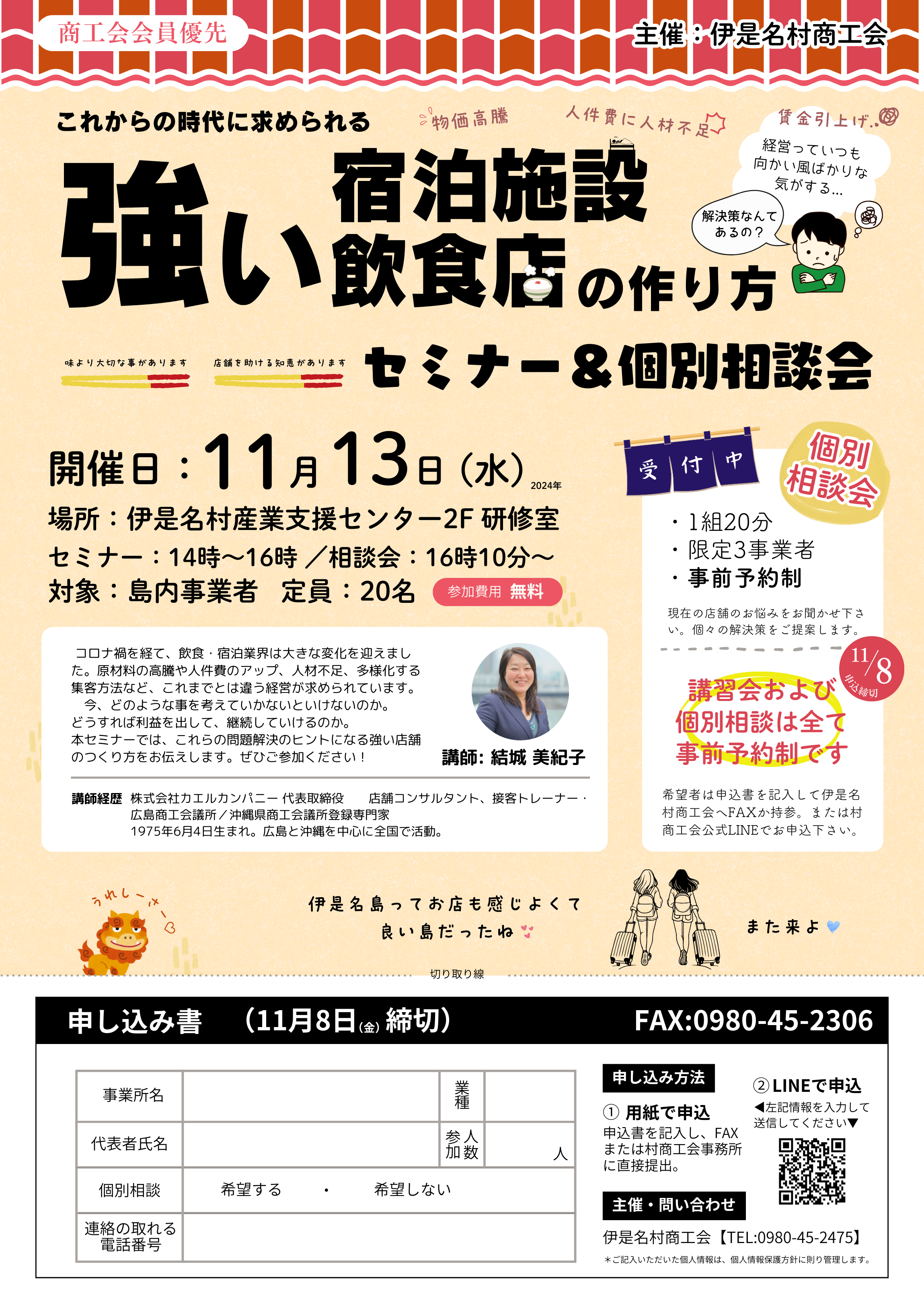 申し込み書を伊是名村商工会事務所にご持参またはFAXいただくか、伊是名村商工会公式LINEでお申込み下さい。