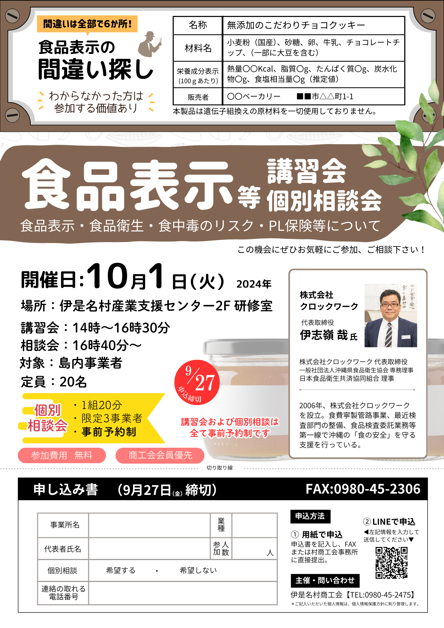 食品表示講習会 個別相談会/10月1日開催