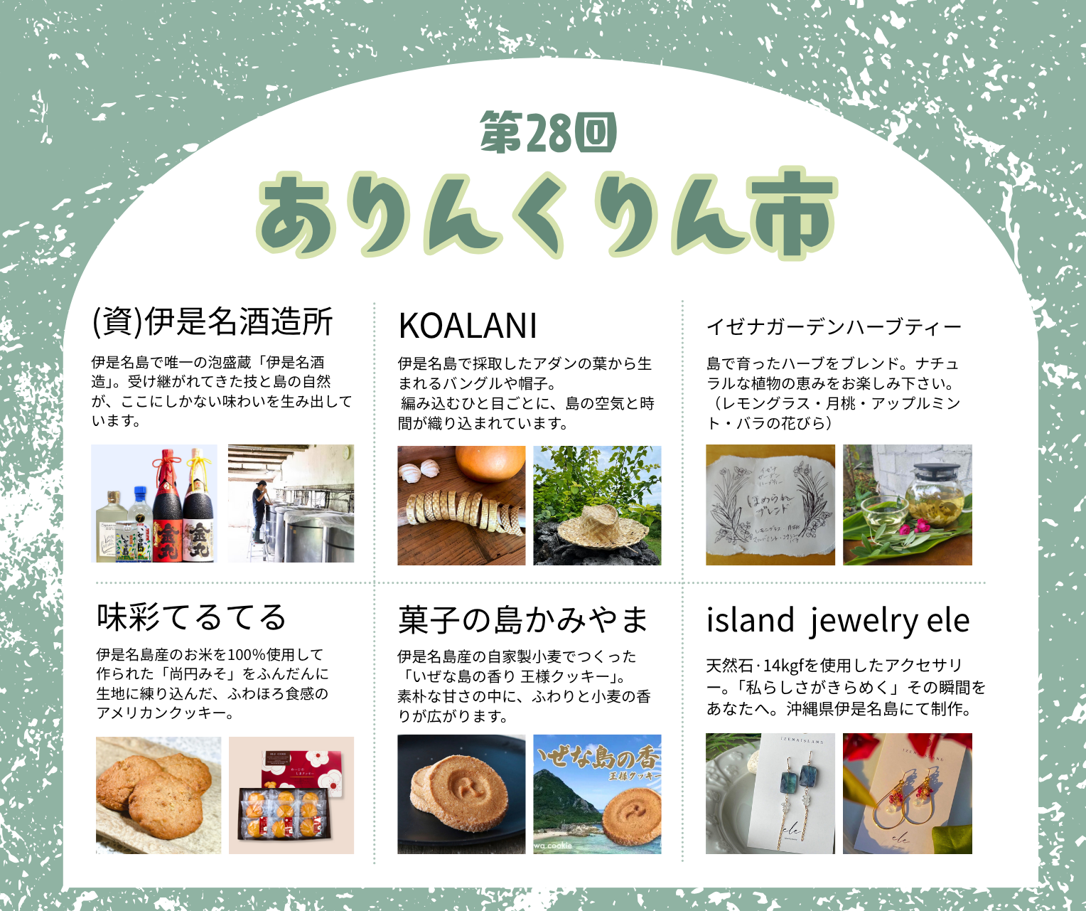 伊是名島から6事業者が出展します。ぜひご家族、ご友人と足をお運び下さい!